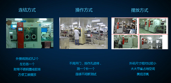 在線式高低溫試驗箱設備可長期在線低溫運行玻璃使用大視窗,門上附帶兩個可供操作的操作孔(硅膠防靜電),可在觀察產(chǎn)品的同時進行取拿產(chǎn)品。高效:以10G SFP+為例,一個班(10個小時)可產(chǎn)1800支模塊 -